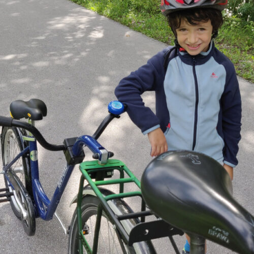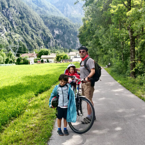 Arrivati alla stazione di San Candido, abbiamo noleggiato lì direttamente le biciclette. Se avete esigenze particolari, poco distante c’è un grande magazzino della Papin, facilmente raggiungibile a piedi. Sono molto disponibili e offrono soluzioni per ogni esigenza: carrellini, camellini, seggiolini, caschetti, bici di tutte le taglie… c’è tutto.
