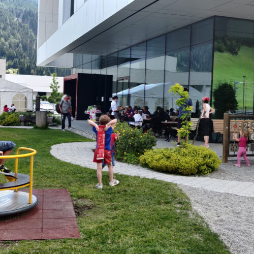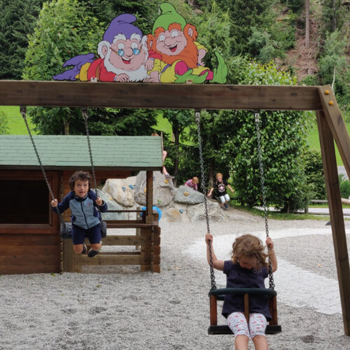 Si parte quindi da San Candido. Io, nella prima salita, sono scesa e ho spinto la bici a mano, ma subito mi sono rimessa in sella e in men che non si dica ci si ritrova in Austria. Poco dopo il confine c’è un bel parco giochi che avevamo visitato in un’altra occasione, ma era troppo presto per fermarci e sarebbe stata una di quelle soste difficili da interrompere. In ogni caso, sappiate che potete fermarvi al Wichtelpark – Parco degli Gnomi di Sillian.