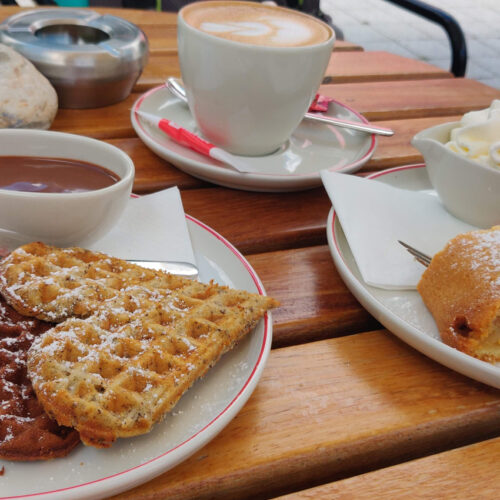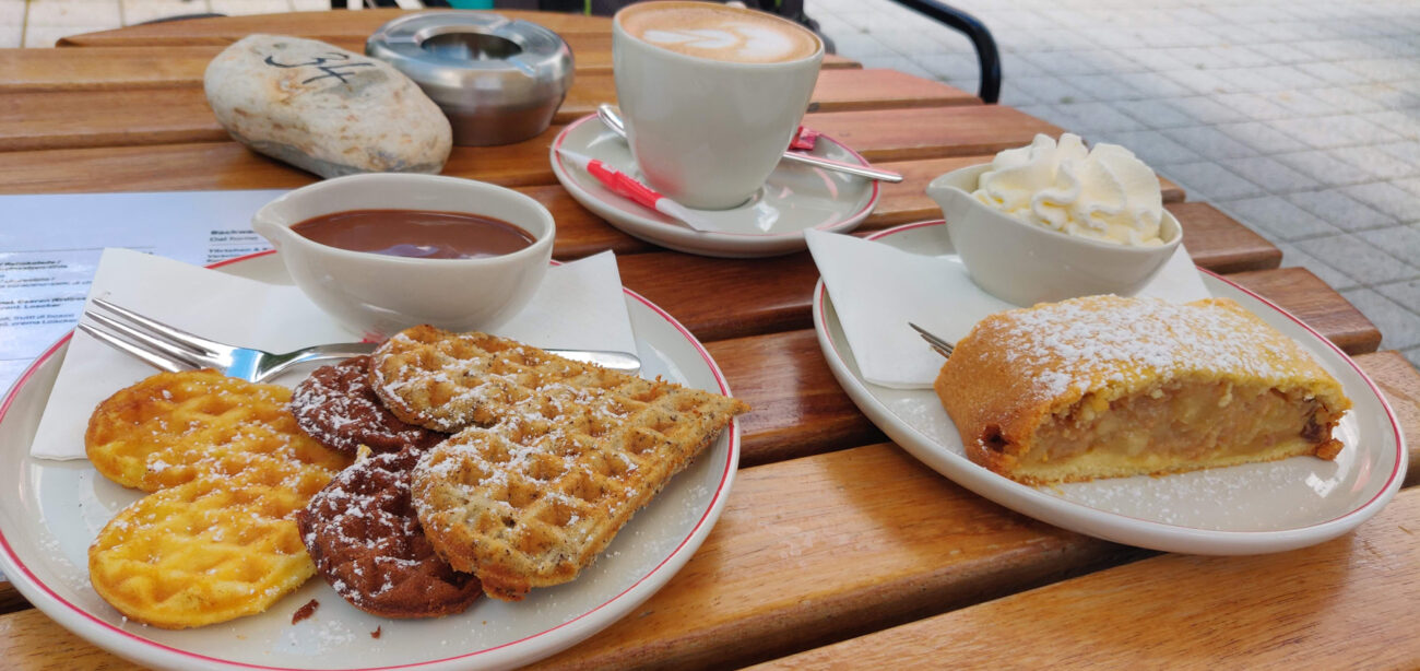 Non avevamo panini con noi e abbiamo pranzato a in un caffè/ristorante dotato di piscine che è proprio sulla ciclabile. Abbiamo mangiato bene: salsicce e patatine ed un buon caffè al Vithal leisure center Assling. Il locale è a un’ora circa da Lienz.
